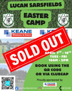 Lucan Sarsfield Easter Camp 2026 Sponsored by Keane Windows (Aptil 7th -10th 10am – 2pm)